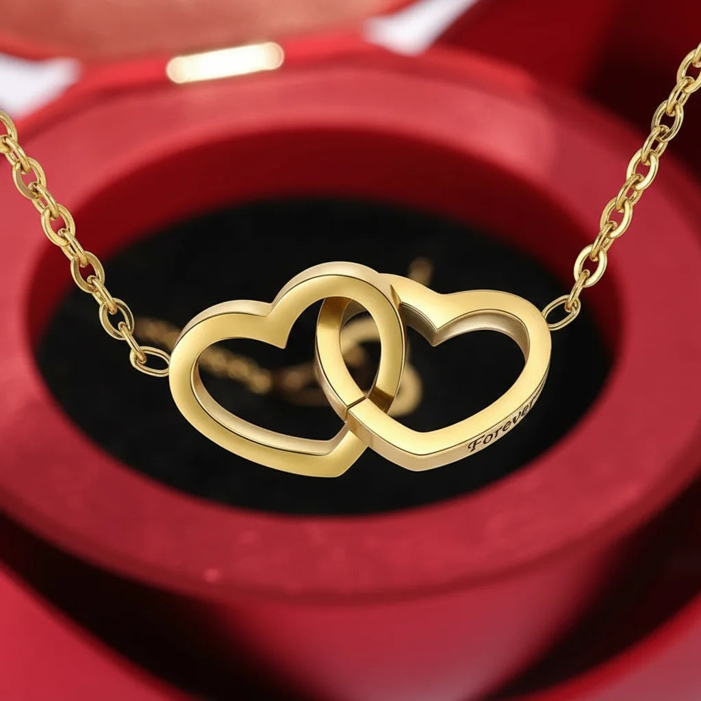 Le collier double cœur représente l'union de deux âmes, un lien indissoluble et l'amour éternel. C'est un symbole puissant de votre connexion unique, un trésor précieux à porter près du cœur, rappelant chaque jour votre amour.